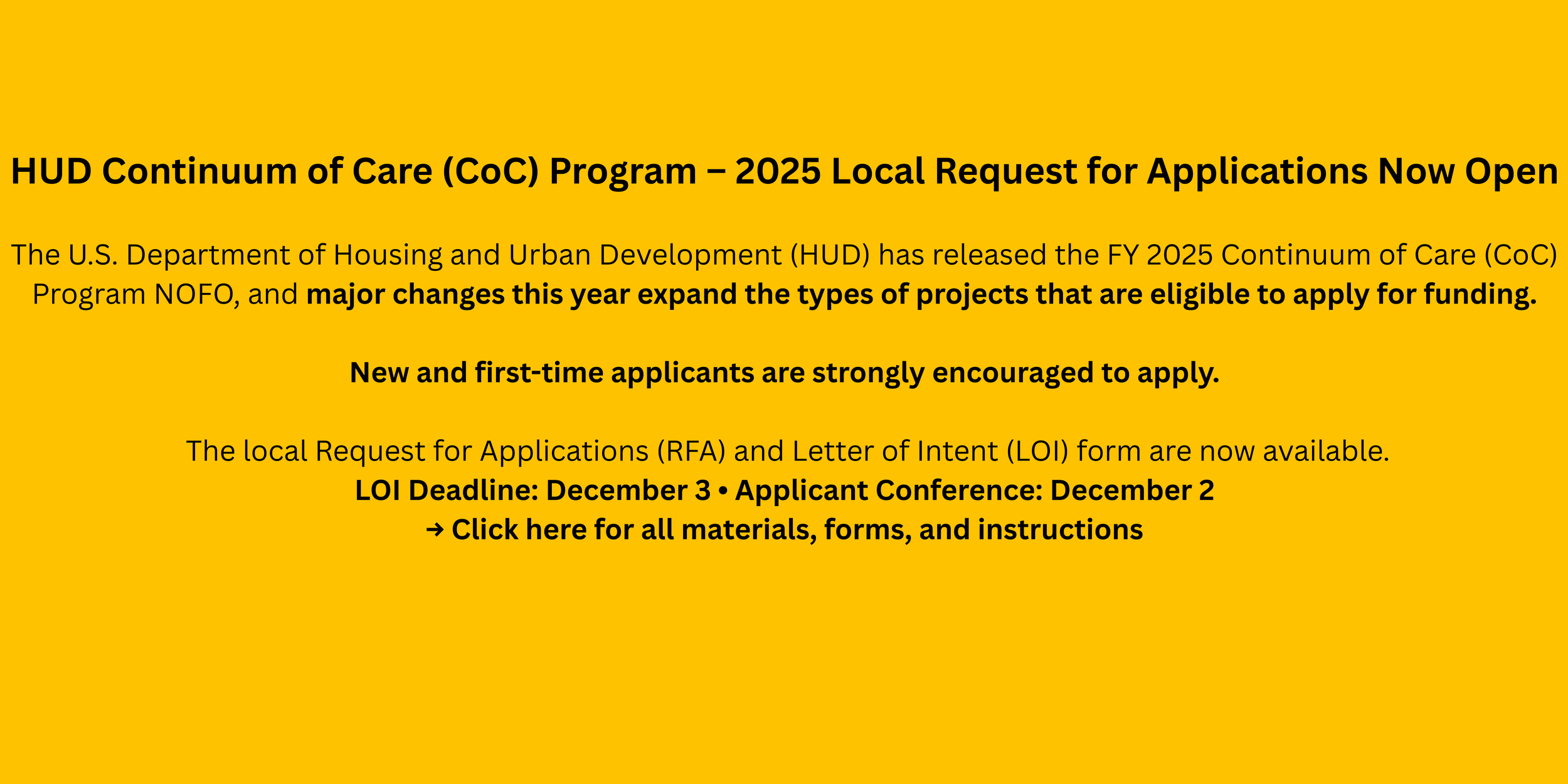 CoC Providers, click here to view information and materials for the following funding opportunities: